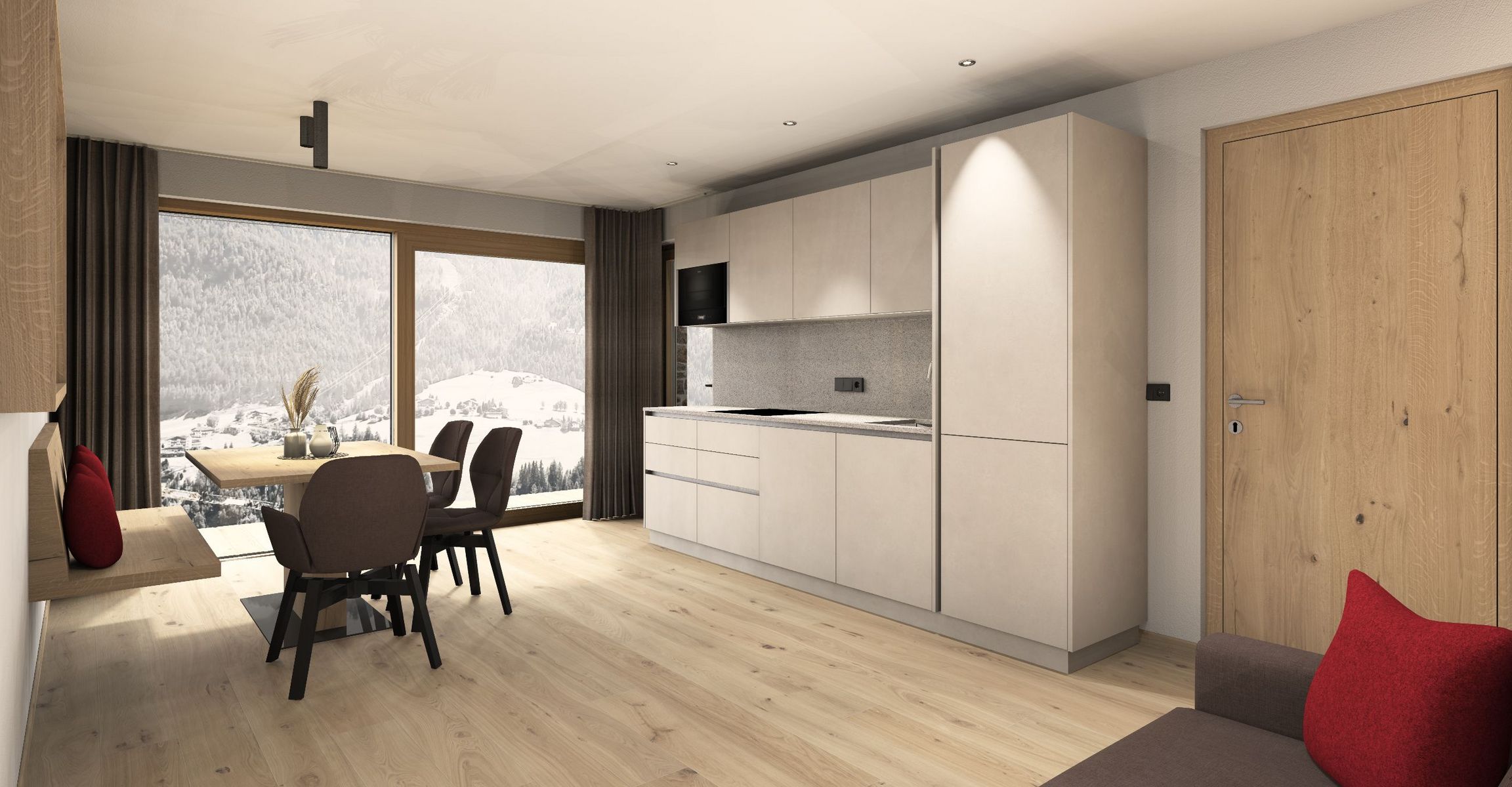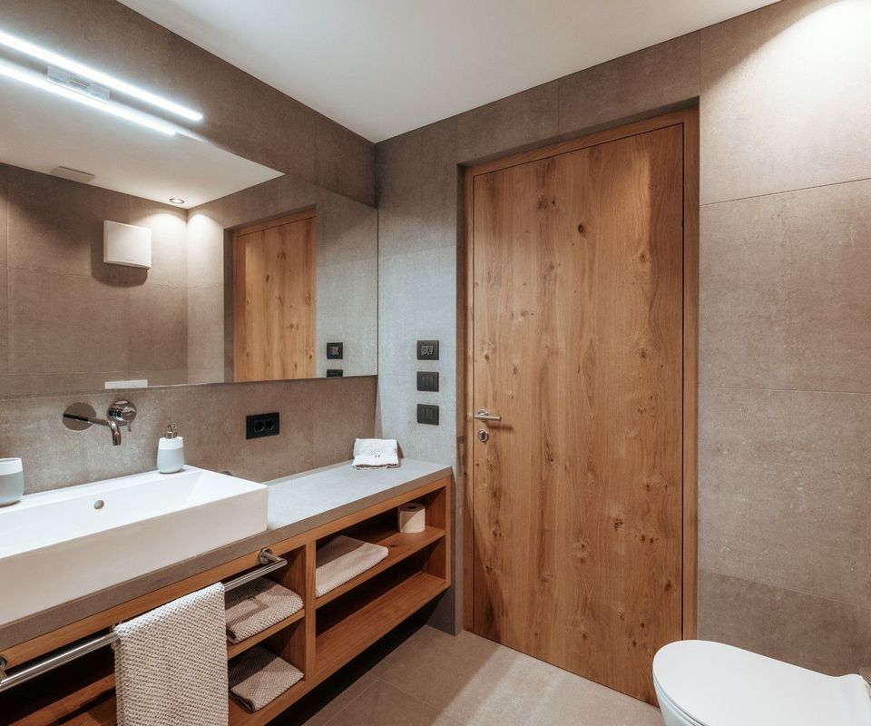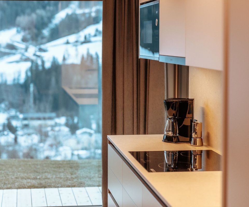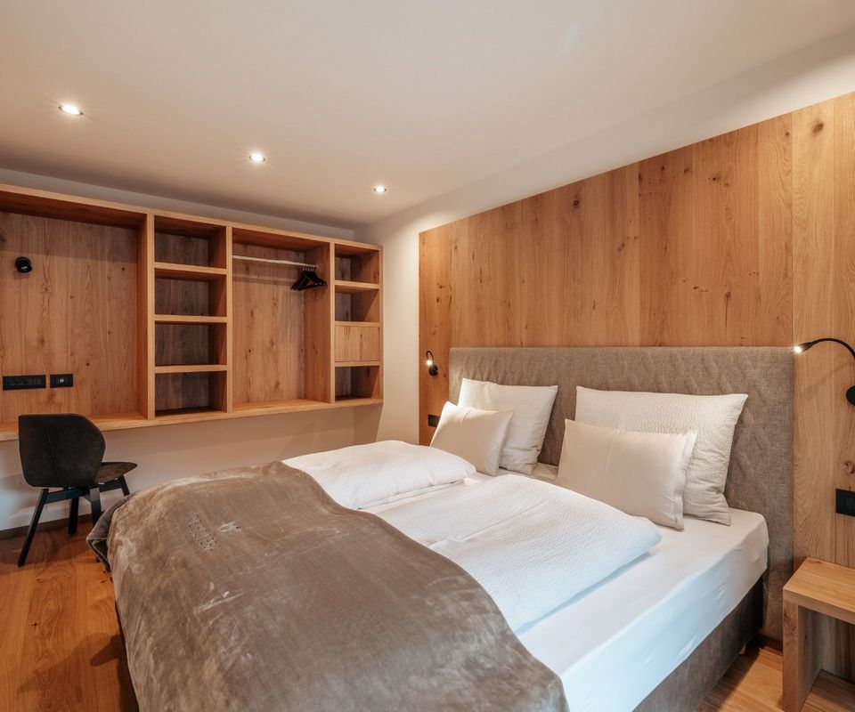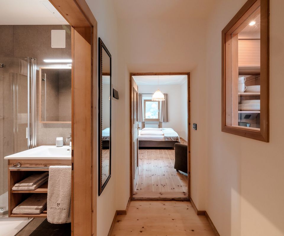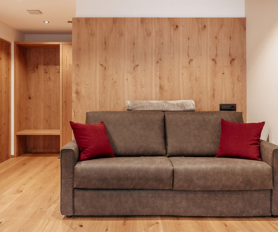 Diese 2 Apartments befinden sich im neuen Klimahaus A. Sie sind modern eingerichtet, mit Holzböden, großen Panoramafenstern, Terrasse und traumhafter Aussicht nach Süden – auf Langkofel, Plattkofel und den Sellastock. Was dich erwartet: