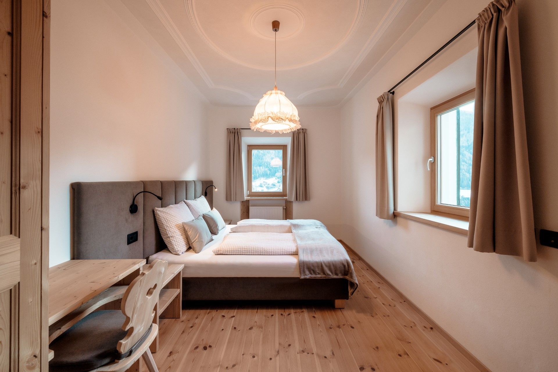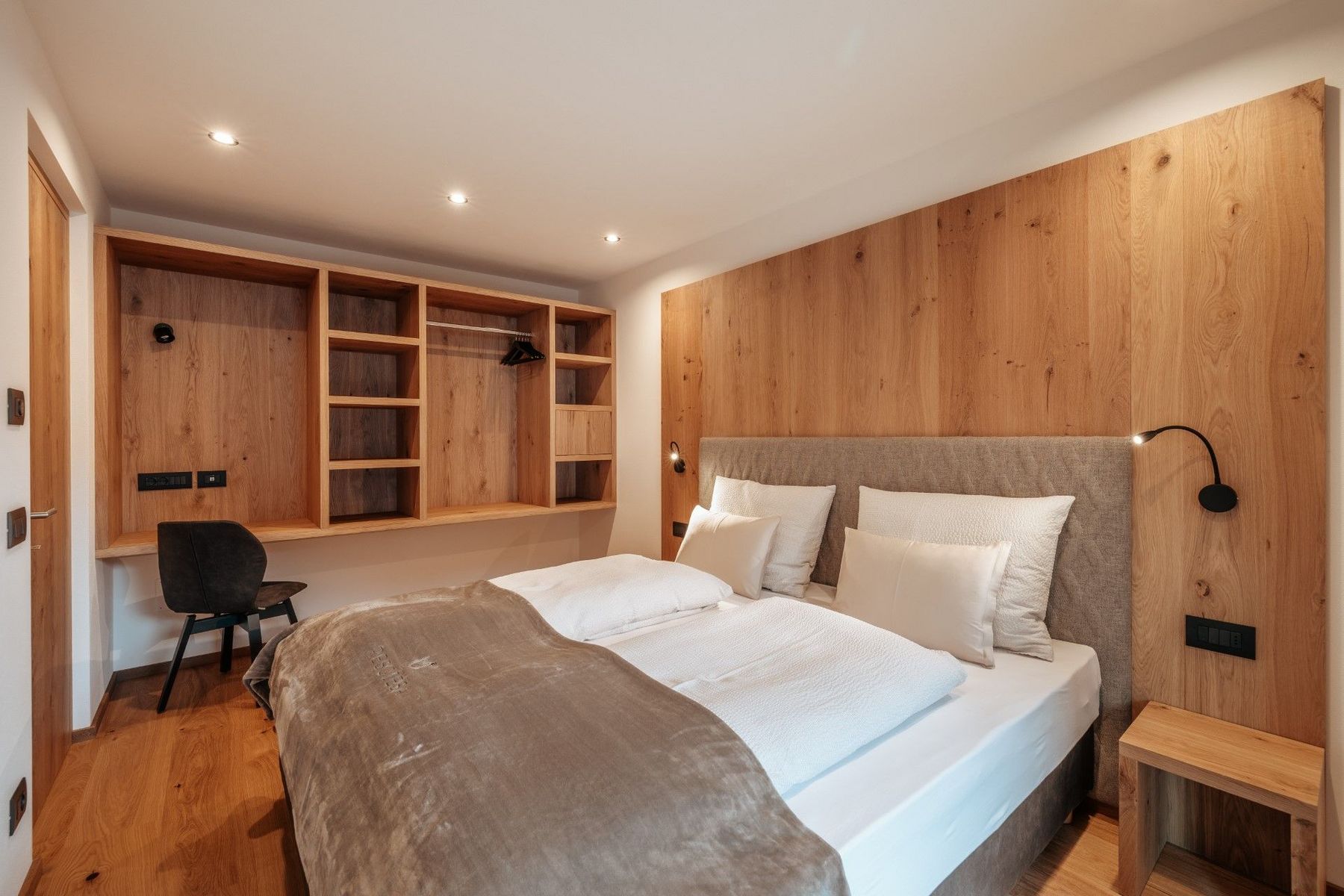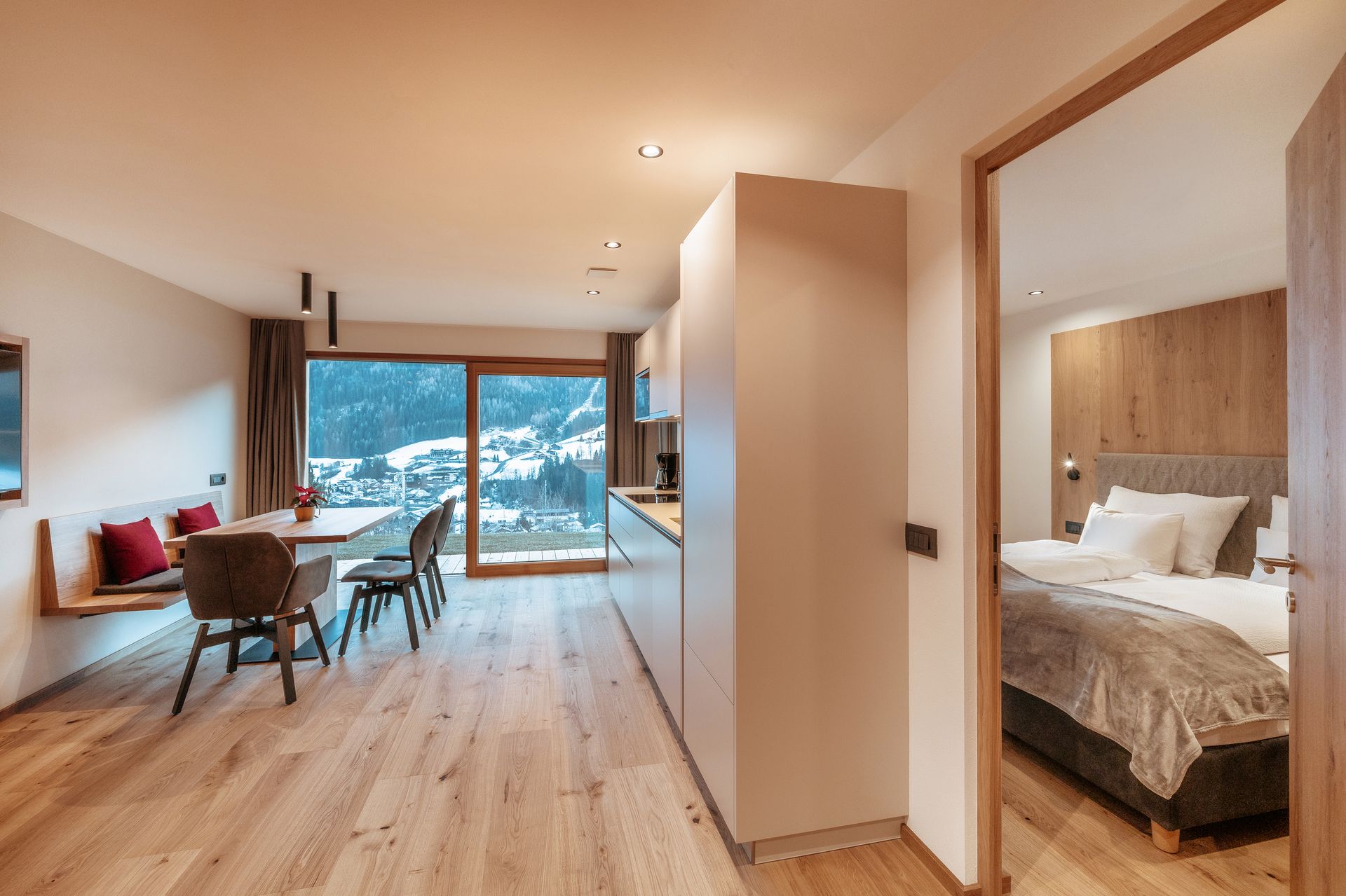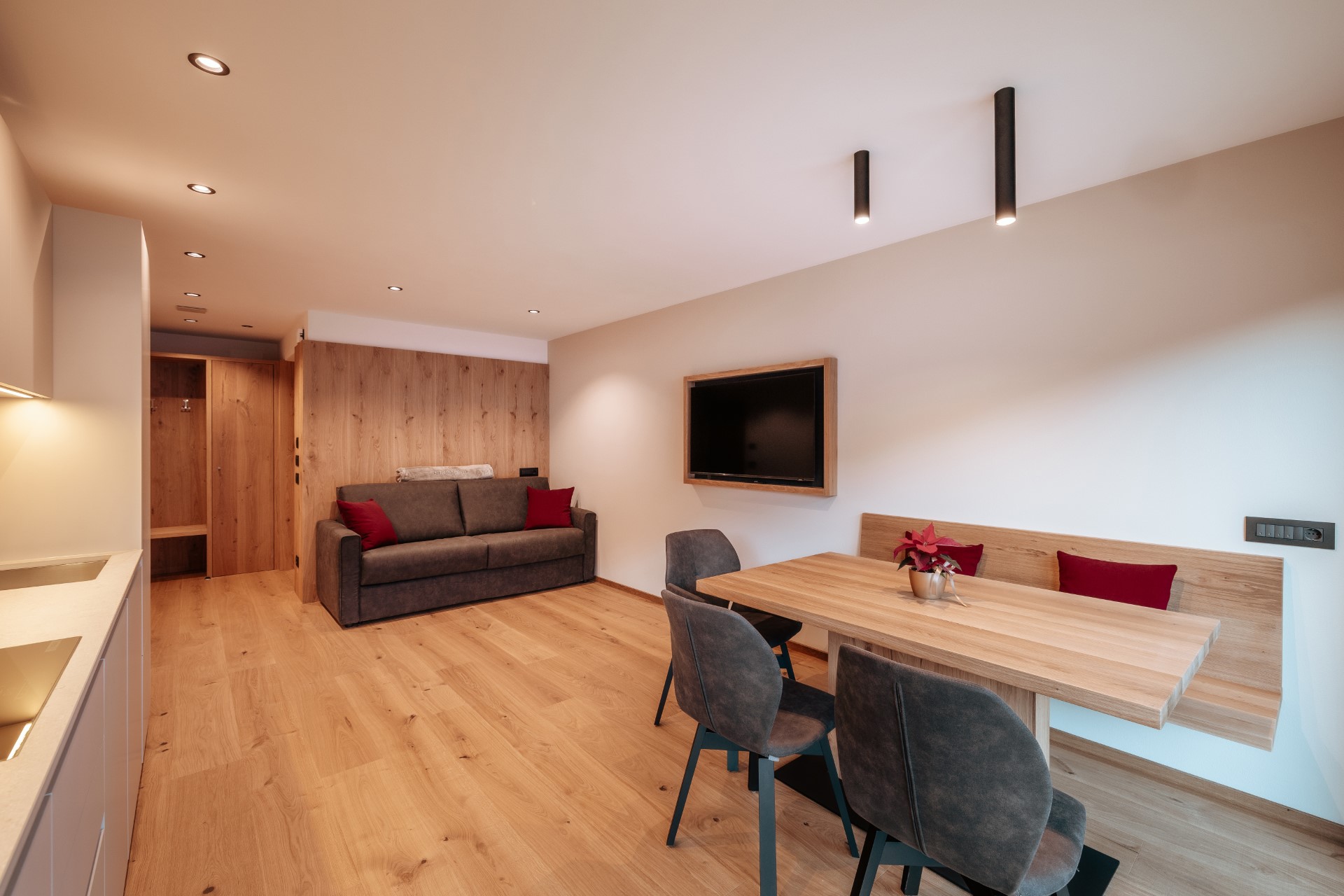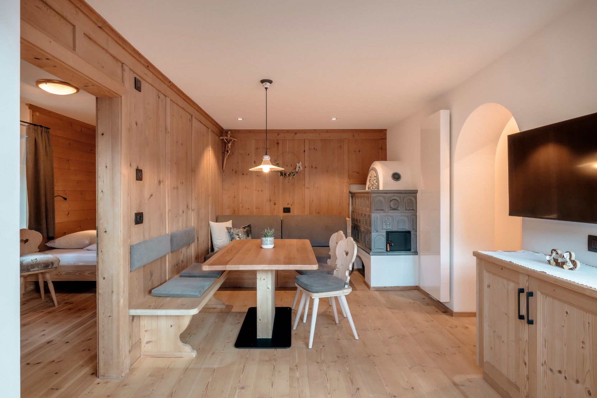 Unsere neuen Apartments sind mit hochwertigen Materialien ausgestattet und werden mit erneuerbarer Energie versorgt. Freu dich auf Ruhe, Herzlichkeit, Tiere und hofeigene Produkte – und auf eine Auszeit, die dir gut tut - mitten im UNESCO-Weltnaturerbe Dolomiten.